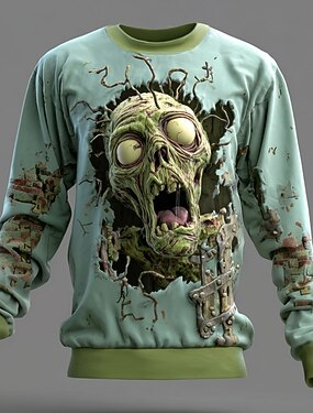Homens Zumbis 3D Moletom Punk Festa Góticas Manga Longa Gola Redonda Férias Verde Claro Roxo Verde Crewneck 3D Todas as Estações Designer S M L XL XXL XXXL