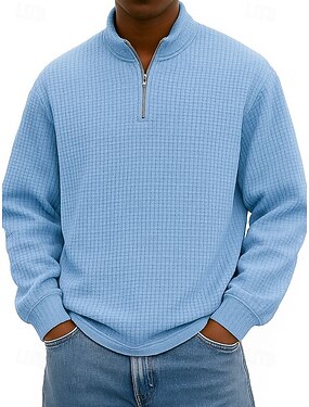 Homens Moletom Moletom Waffle Moletom com zíper Preto Branco Azul Marinha Cáqui Cinzento Escuro Meio Zíper Tecido Patchwork Estriado Bolso frontal Diário Feriado Para Noite não imprimível Poliéster