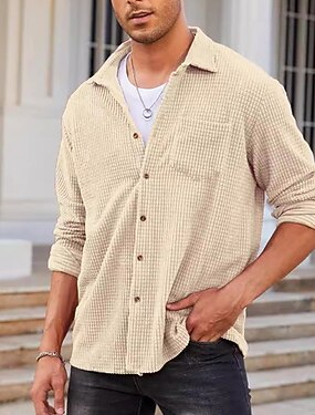 Homens Jaqueta de Camisa Camisolas Jaqueta de Transição Diário Leve Bolsos Primavera Xadrez Clássico Lapela Padrão Vermelho Verde cáqui Cinzento Casaco