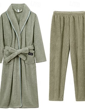 Homens Pijamas Roupa de Dormir Roupão Tecido Moda à moda Clássico Casa Diário De Cama Flanela Poliéster Térmico / Quente Conforto Macio Capuz Manga Longa Outono Inverno Preto Rosa
