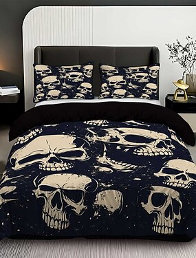 Conjunto de capa de edredom com estampa de caveira escura, estilo hotel, composto por 1 capa de edredom e 2 fronhas. Tecido macio e fofo. Edredom não incluso.