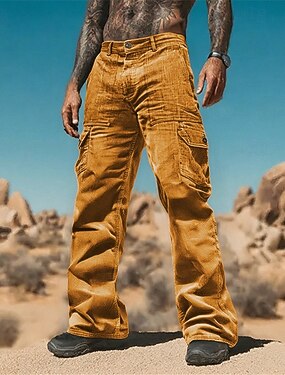 Homens Bermuda Cargo Calção Shorts casuais Shorts de Trilha Shorts de veludo cotelê Com Cordão Cintura elástica Bolso multi Tecido Respirável Pavio Humido Comprimento do joelho Ao ar livre Casual
