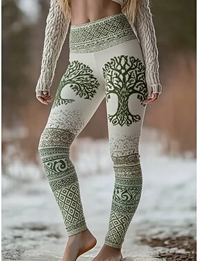 Mulheres Viking Leggings Leggings aconchegantes Férias Vintage Estilo Étnico Comprimento total Cintura Alta Gráfico Árvore Estampado Confortável Com Stretch Casual Diário Férias Verde Primavera