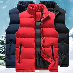 Homens Colete puffer Estilo Formal Padrão Casual Térmico / Quente Respirável Inverno Outono Côr Sólida Azul Preto Vermelho Casaco puffer