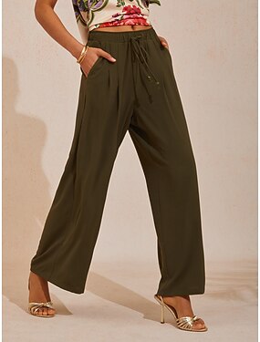 Mulheres Perna larga Social Roupa de rua à moda Comprimento total Natural Tecido Bolsos Cintura elástica Confortável Escritório Formal Rua clarete Cinza escuro Amarelo Café Outono Normal