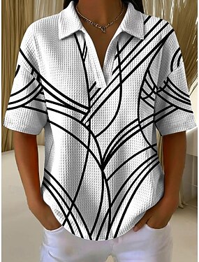 Mulheres Tops de verão Gráfico Geométrica Elegante Vintage à moda Manga Curta Colarinho de Camisa Tops regulares Casual Diário Azul Cinza Preto Branco Azul empoeirado Verão Primavera