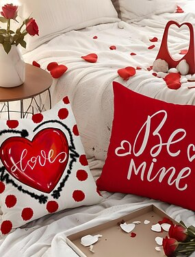 Capa de almofada com estampa de coração para o Dia dos Namorados, almofada com estampa criativa para encontro romântico ou festa, decoração aconchegante para sofá, almofada macia para quarto ou sala