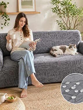 Capa de sofá impermeável de luxo em jacquard, capa elástica que cobre todo o sofá, protetor de sofá resistente a arranhões de gato e poeira.