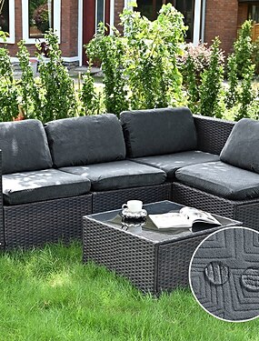 Conjunto de 4 capas elásticas para almofadas de jardim, 100% impermeáveis, ideais para sofás e poltronas externas. Laváveis e reutilizáveis, estas capas são perfeitas para proteger seus móveis.