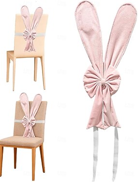 Capa decorativa para cadeira com orelhas de coelho da Páscoa, laço rosa fofo de coelho da Páscoa para o encosto da cadeira, capas removíveis e elásticas para encosto de cadeiras de coelho, ideais para