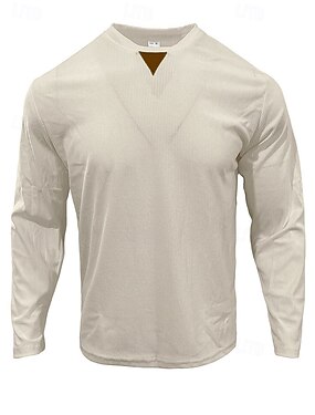 Homens Camiseta T-shirt Manga Longa Decote V Verão Primavera Tecido Moda Designer Leve Clássico Macia Férias Rua Para Noite Preto Azul Céu Roxo Top Tee para Homens