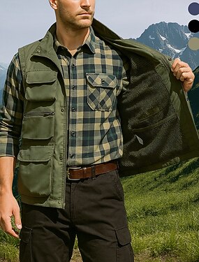 Homens Colete de Trilha Casaco de inverno Colete de lã Inverno Outono Ao ar livre Térmico / Quente Colete Caça Pesca Alpinismo Preto Verde Tropa Cáqui Azul Escuro