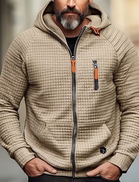 Homens Moletom Full Zip Hoodie Preto Cáqui Cinzento Com Capuz Tecido Jacquard Bolsos Desportos e Ar livre Diário Feriado Poliéster Roupa de rua Básico Casual Primavera Outono Roupa Moletons Moletons