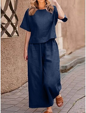 Mulheres Calças de linho de algodão Perna larga chinês Calças Férias Roupa de rua Básico Comprimento total Cintura Média Tecido Bolsos Cintura elástica Confortável Conforto Micro-Elástica Ao ar livre