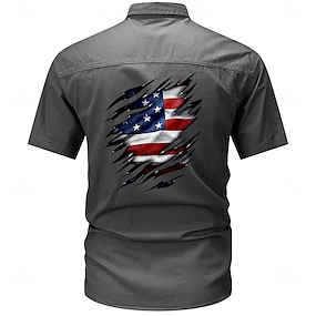 Dia da Independência Homens Bandeira dos EUA Patriótico Camisas de trabalho camisa ocidental Camisa de carga Manga Curta Casual Tático Esportes Para Noite Verão Primavera Aberto para a Lateral Arte
