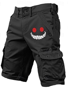 Homens Gráfico Inovador Rosto sorridente Bermuda Cargo Shorts de trabalho Cintura Média Clássico Casual Ao ar livre Acampar e Caminhar Vários bolsos Designer Roupa