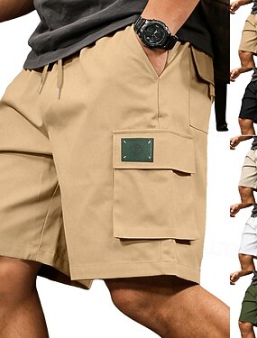 Homens Calças de carga Bermuda Cargo Calção Shorts casuais Bolsos Cintura elástica Vários bolsos Tecido Respirável Comprimento do joelho Casual Ao ar livre Streetwear Moda Roupa de rua Preto Cáqui