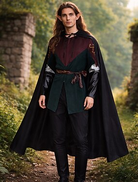 Conjunto Retro Vintage Medieval Renascentista Acessórios Xales Túnica com acessórios Manga Comprida Viking Ranger Fantasia Homens Dia Das Bruxas Carnaval Mascarilha feira renascentista Festa Temática