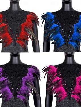 Carnaval 2026 - Acessórios de Samba do Carnaval do Rio - Xale de Capa de Pena Vermelha e Preta Feminina com Choker de Renda Acessórios de Fantasia de Vampiro Gótico