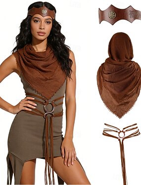 Medieval Renascentista Fantasia fantasia Acessórios Guerreiro Viking Fantasia Mulheres Viking Dia Das Bruxas Carnaval Espetáculo LARP Ren Faire Adulto Xale Cinto Bandana