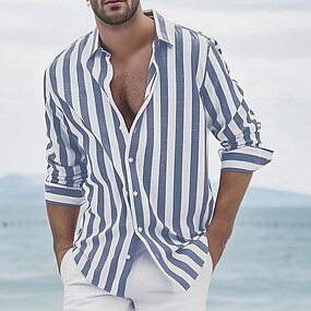 Homens Geométrica Listrado Camisa Social camisa de botão Manga Longa Moda Casual Dia a Dia Casual Roupa de Praia Verão Primavera Aberto para a Lateral Impressão 3D Camisa tipo linho Azul Preto Rosa
