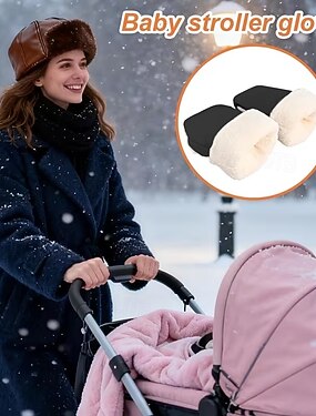 Luvas de proteção para carrinho de bebê - luvas grossas de inverno à prova de vento e com forro de lã para as mãos.