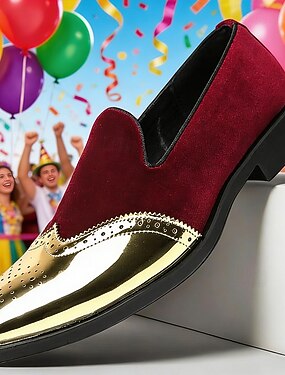 Mocassins de Veludo Vermelho e Acento Dourado Masculinos de Mardi Gras – Sapatos Luxuosos Slip-On para Carnaval Festas e Eventos Elegantes