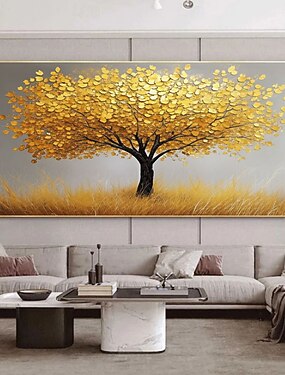 Pintura abstrata a óleo sobre tela de uma grande árvore dourada, uma obra de arte texturizada para parede. Pintura original da Árvore da Vida, decoração personalizada para sala de estar ou presente.