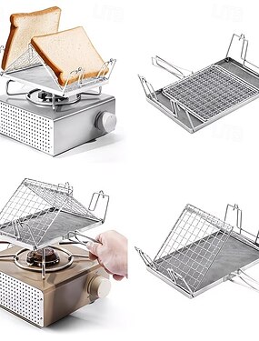 Grelha dobrável em aço inoxidável para torradas, churrasqueira portátil para camping, ideal para piqueniques e caminhadas, utensílio para assar, desmontável e fácil de limpar, perfeita para