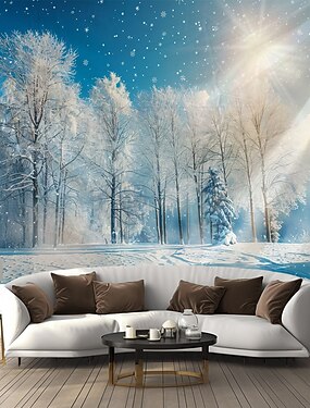 Tapeçaria mural grande com paisagem de inverno nevada, decoração fotográfica, fundo para cortinas em casa, quarto e sala de estar.