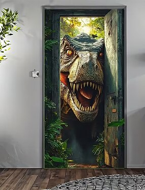 Pôsteres Tampa da porta Banners externos Dinossauro Estilo bonito Moderno 3D De Festa Dorm Sala de Adolescentes Dormitório da faculdade Quarto de fraternidade da caverna masculina Fundos de fotografia