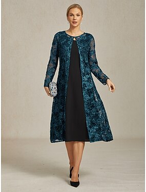 Mulheres Vestido smoking Linha A Casamento Formal Convidado do casamento Veludo Elegante Bloco de Cor Meia Manga Longo Lapelas entalhadas