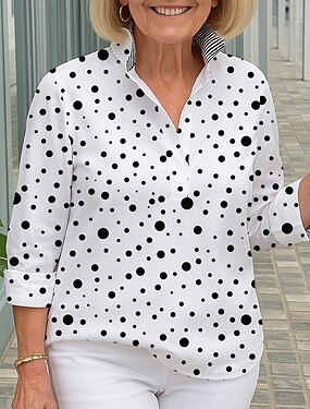 Mulheres Camisa Social Blusa Imprimir Poá Moderno Casual Manga Longa Colarinho de Camisa Tops regulares Diário Para Noite Branco Amarelo Azul Céu Verde Outono