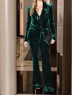 Mulheres Ternos de 2 peças Formal Convidado do casamento Veludo Elegante Luxuoso Manga Longa Longo Lapelas entalhadas Trespassado