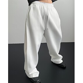 Homens Calças Esportivas Calças Calça de moletom de perna reta Com Cordão Bolsos Cintura elástica Tecido Conforto Esportes Diário Moda Casual Preto Branco Micro-Elástica