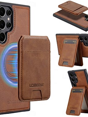 telefone Capinha Para Samsung Galaxy S26 S26 Plus S26 Ultra Capa traseira Caso de Adsorção Magnética Com Suporte Magnética Suporte para carregamento sem fio Retro Couro PU