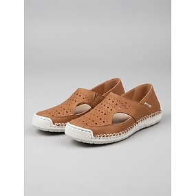 Sapatilhas femininas marrons perfuradas, sem fecho – calçados respiráveis e confortáveis com recortes para caminhadas, viagens, passeios na cidade e jardinagem. &uso diário