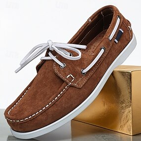 Mocassins masculinos de camurça marrom com cadarço – sapatos casuais, ideais para o dia a dia, para o escritório e para um visual elegante ao ar livre.