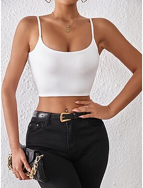 Mulheres Camisola Regata Tecido à moda Sensual Sem Manga Sem Mangas Com Alças Tops regulares Diário Preto Branco Vermelho Castanho Claro Cinzento Escuro Verão