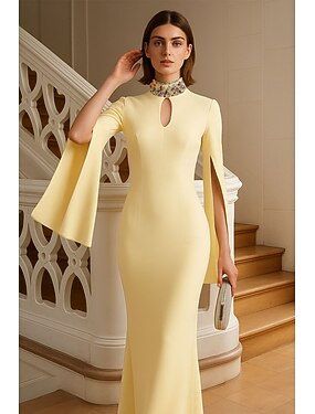 Vestido de gala sereia/trumpet cauda varrida/escova elegante com mangas longas decote alto casamento dia dos namorados com cristais e apliques