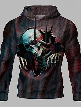 Homens Caveiras 3D Moletom Punk Exagerado Góticas Casual Manga Longa Gola Redonda Com Capuz Streetwear Bandagem Azul Vermelho Verde Cinzento Com Cordão Outono Inverno Designer S M L XL XXL XXXL