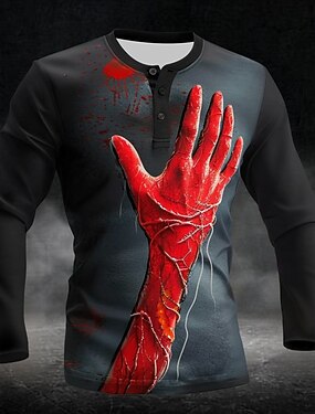 Homens Respingos de sangue mãos Manchas de sangue Camisa Henley Manga Longa Moda Estilo bonito Diário Casual Feriado Para Noite Primavera & Outono Todas as Estações Preto Henley Camiseta Henley