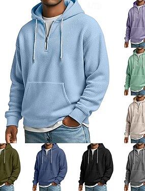 Homens Moletom Moletons Waffle Moletom com capuz Azul Preto Verde Claro Verde Tropa Roxo Com Capuz Tecido bolso canguru Desportos e Ar livre Casual Diário não imprimível Roupa de rua Legal Roupa de
