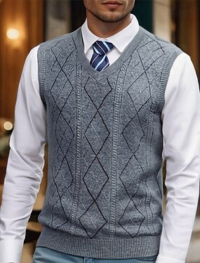 Homens Colete de moletom Vestido Suéter Pulôver Estriado Tricotar Tops regulares Tricotado Tecido Decote V Contemporâneo Moderno Trabalho Roupa Diária Roupa Sem Mangas Inverno Camelo Vinho S M L