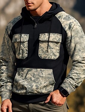 Homens Moletom Quarter Zipper Hoodie Moletom Tático Moletom camuflado Vermelho Vinho Preto Verde Tropa Azul Real Cáqui Com Capuz Côr Camuflagem Zíper Desportos e Ar livre Casual Diário Roupa de rua