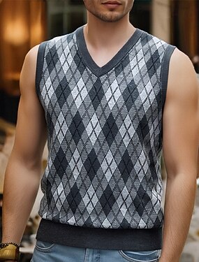 Homens Colete de moletom Vestido Suéter Pulôver suéter Colete Suéter de malha Estriado Tricotar Tops regulares Tricotado Losango Decote V Moda Casual Férias Roupa Diária Roupa Outono Inverno Cinzento