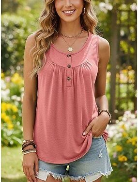 Mulheres Camiseta Frente Única Côr Sólida Clássico Casual Sem Manga Decote V Tops regulares Diário Para Noite Final de semana Damasco rosa Preto Branco Rosa Azul Marinha Verão Primavera