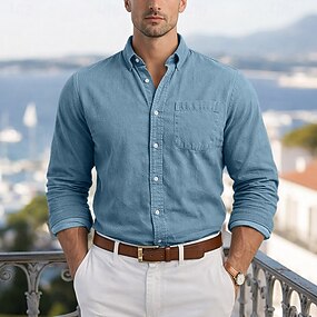 Homens Camisa Social Camisa casual camisa de botão Azul Marinha Caqui Cinzento Azul Claro Manga Longa Tecido Lapela Casual Diário Bolso frontal Roupa Elegante Moda Casual
