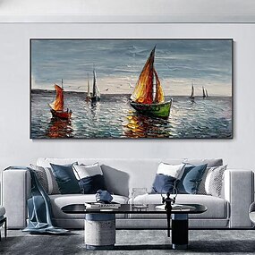 pintura a óleo artesanal lona arte de parede decoração moderna abstrata mar veleiro vela paisagem para sala de estar decoração de casa rolou pintura sem moldura não esticada