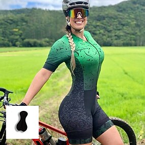 Mulheres Macacão para Triathlon Manga Curta Ciclismo de Montanha Ciclismo de Estrada Verão Primavera Outono Azul Preto Amarelo Gradiente Moto Tapete 3D Secagem Rápida Macio Tiras Refletoras Respirável